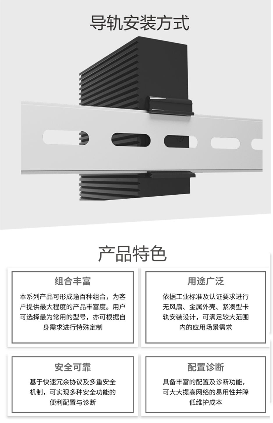 NT30-IES48GMP-SFP 是網(wǎng)管型工業(yè)以太網(wǎng)交換機,產(chǎn)品符合 FCC、CE、RoHS 標準。支持 4 個千兆光口和 8 個千兆 POE 電口;支持工業(yè)現(xiàn)場所需的 以太網(wǎng)二層協(xié)議,保證通信網(wǎng)絡的穩(wěn)定性;該系列交換機采用低功耗、無風扇設計,確保無噪聲干擾,同時支持-40~85℃工作溫度和良好的 EMC 電磁 兼容性能,保證在惡劣的工業(yè)環(huán)境中保持穩(wěn)定的工作,為工廠自動化,智能交通,視頻監(jiān)控等工業(yè)應用領(lǐng)域組建快速穩(wěn)定的網(wǎng)絡終端接入網(wǎng)絡提供安 全可靠的解決方案。