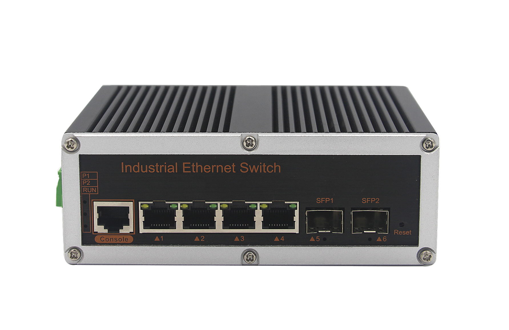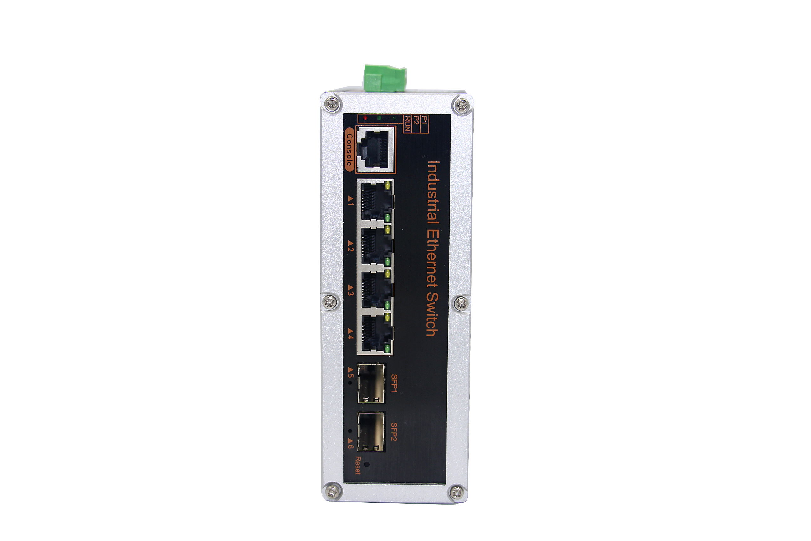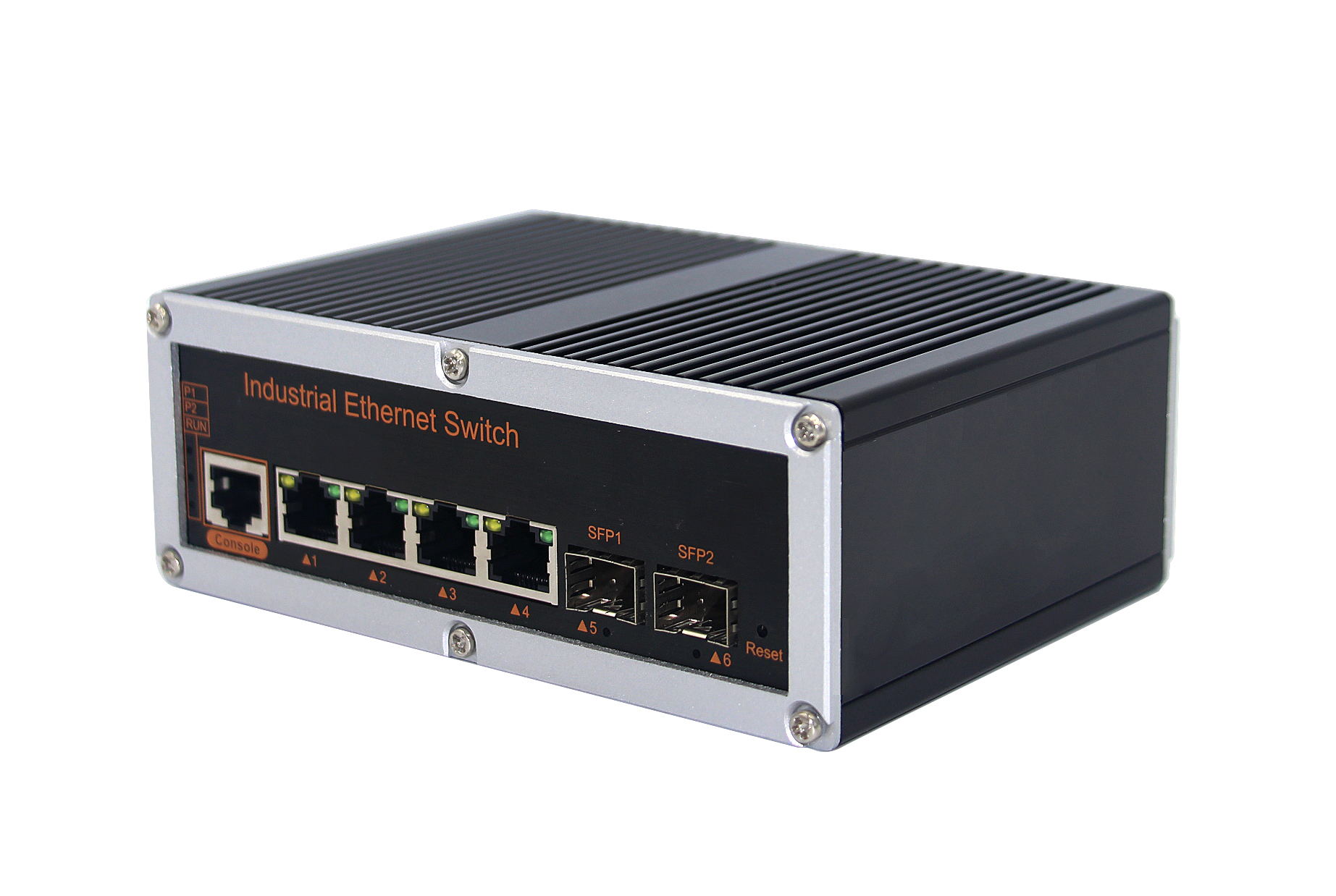 網(wǎng)管型千兆2光4電工業(yè)級以太網(wǎng)交換機,產(chǎn)品符合FCC、CE、ROHS標準。支持2個千兆光口和4個千兆電口,支持一路console口;支持工業(yè)現(xiàn)場所需的以太網(wǎng)二層協(xié)議,保證通信網(wǎng)絡(luò)的穩(wěn)定性;該系列交換機采用低功耗、無風扇設(shè)計,確保無噪聲干擾,同時支持-40~85℃工作溫度和良好的EMC電磁兼容性能,保證在惡劣的工業(yè)環(huán)境中保持穩(wěn)定的工作,為工廠自動化,智能交通,視頻監(jiān)控等工業(yè)應用領(lǐng)域組建快速穩(wěn)定的網(wǎng)絡(luò)終端接入網(wǎng)絡(luò)提供安全可靠的解決方案。護等級的外殼及 LED 指示燈,使之成為一個即插即用的工業(yè)級設(shè)備,為用戶的以太網(wǎng)設(shè)備聯(lián)網(wǎng)提供可靠、便捷的解決方案。