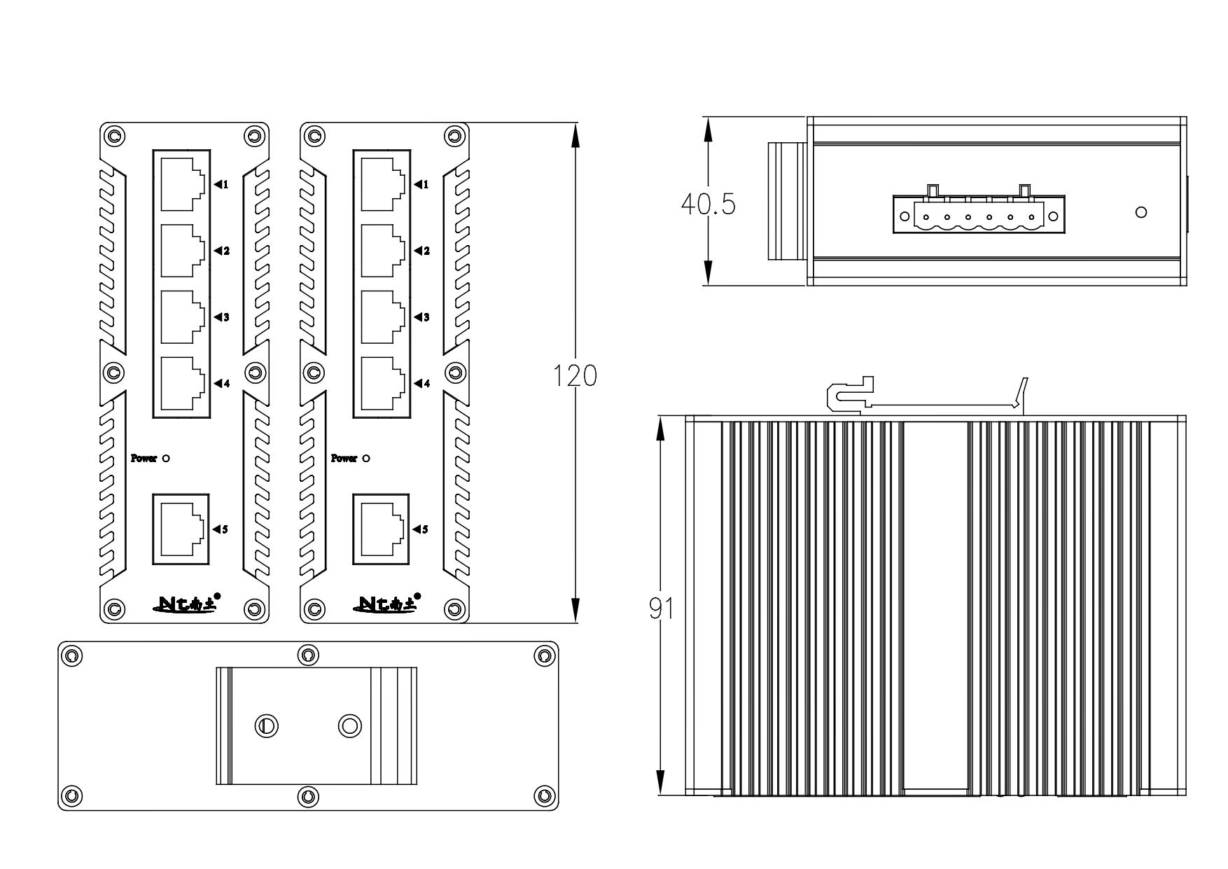 工業(yè)級(NT品牌)百兆非網(wǎng)管5電,導軌式-DC12~52V供電-寬溫(-40℃-85℃)。默認不含AC電源適配器。 |