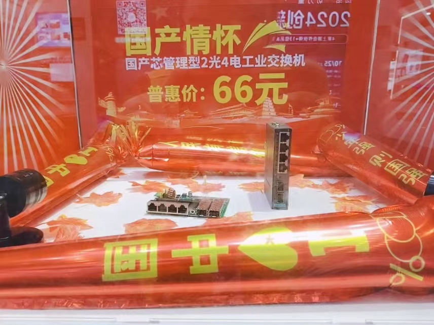 在本次CPSE安博會上,宇航展出了“6U-6萬兆48電”、"24個萬兆光口+2個100G光口"、"6萬兆+24個2.5G電口"、"6萬兆+3個子卡插槽"、"TSN 2萬兆光+4x2.5G光+8千兆電"“全國產(chǎn)工業(yè)交換機”等業(yè)內(nèi)首次上市的工業(yè)級交換機,最后國產(chǎn)芯片的全國產(chǎn)管理型千兆2光4電拔得頭籌,堪稱“鎮(zhèn)館之寶”,各方對此款產(chǎn)品評價甚高,這款產(chǎn)品標志著我們國產(chǎn)工業(yè)交換機完全可以不依賴外資關(guān)鍵元器件,這將對整個中國工業(yè)交換機行業(yè)的產(chǎn)業(yè)鏈發(fā)展產(chǎn)生深遠影響。