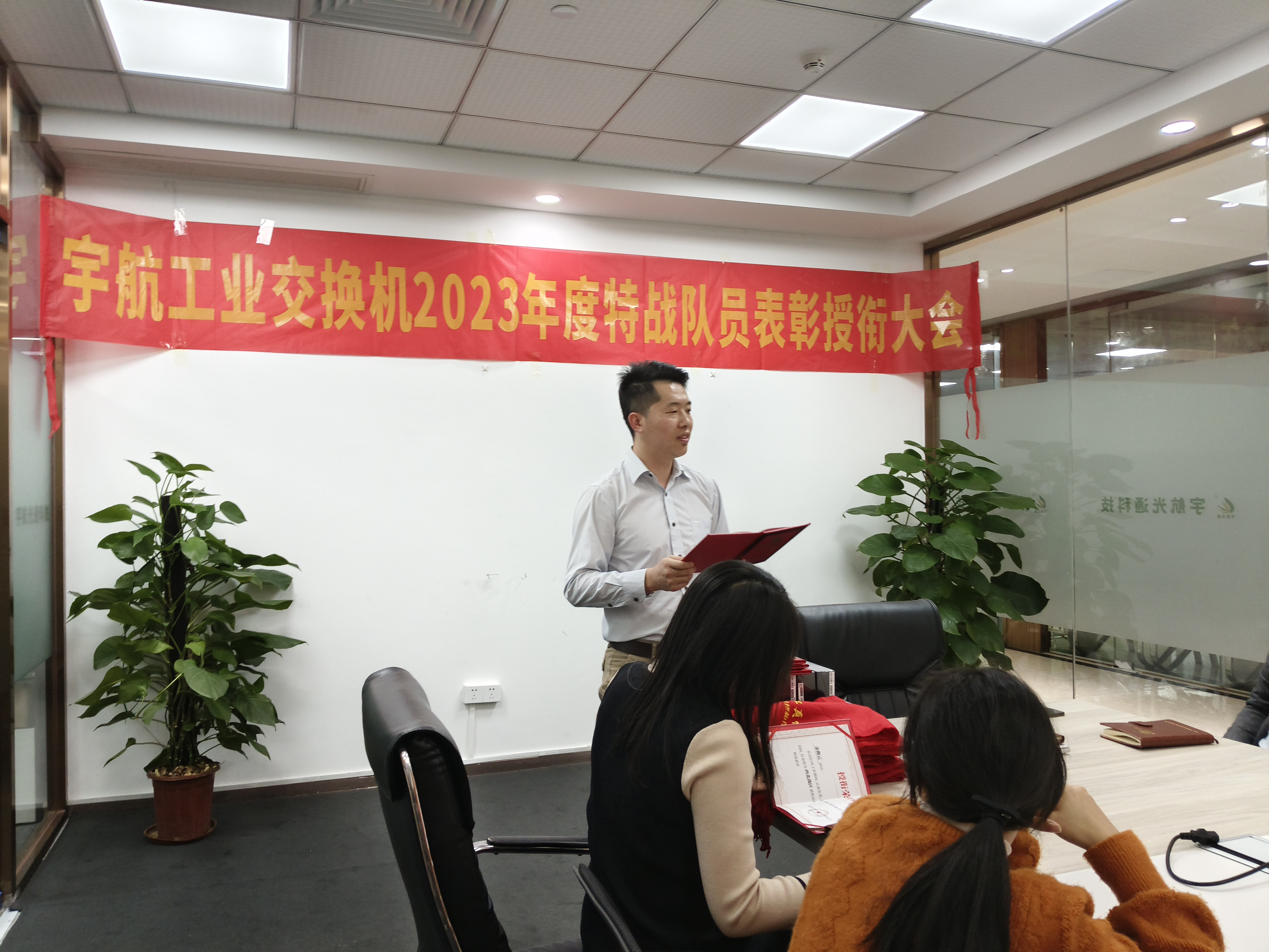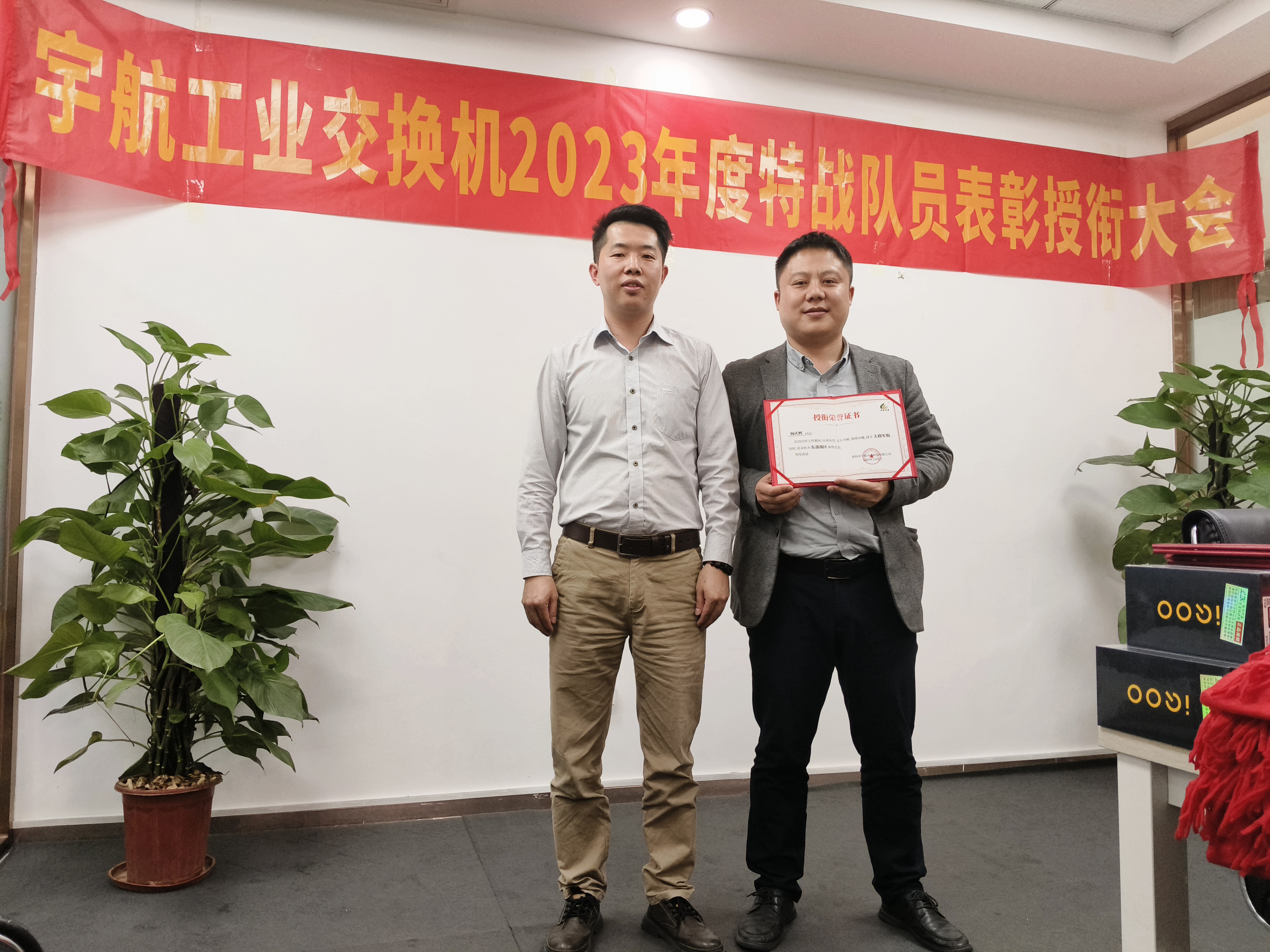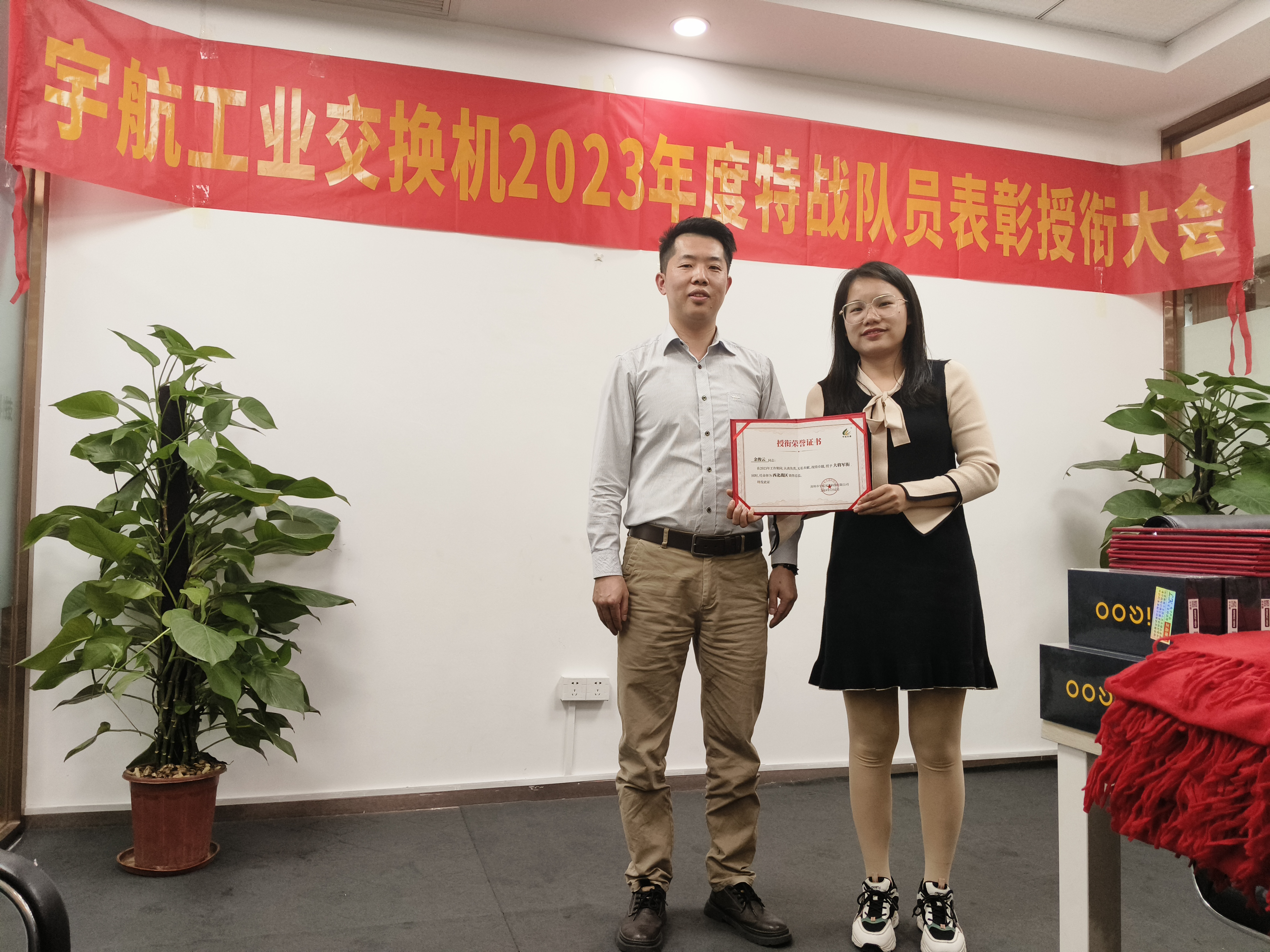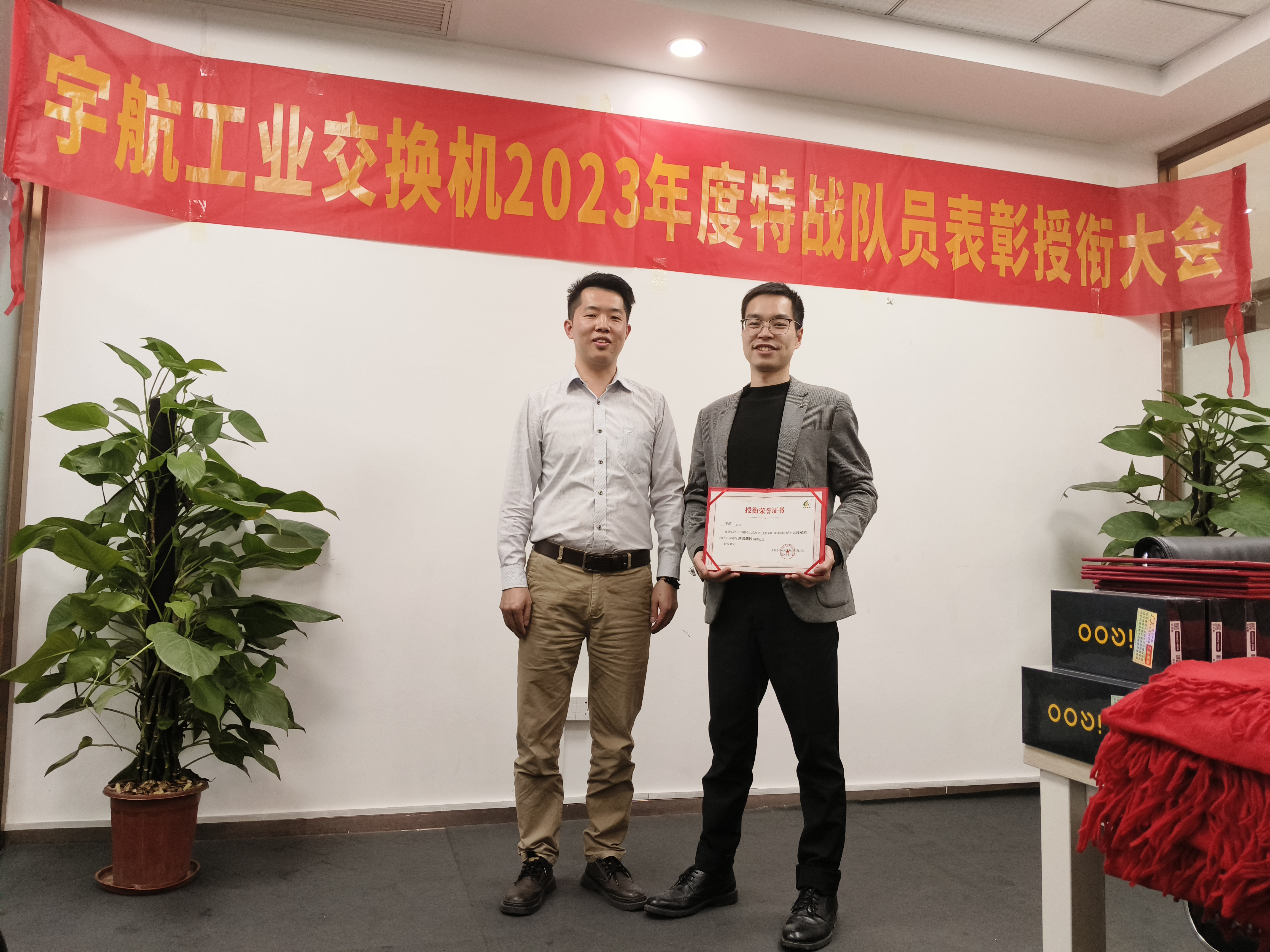 為了表彰各位宇航特戰隊員在市場開拓、客戶維護和團隊協作等方面做出的卓越貢獻,宇航工業交換機營銷副總張玉平代表公司為大家頒發榮譽和獎勵。
