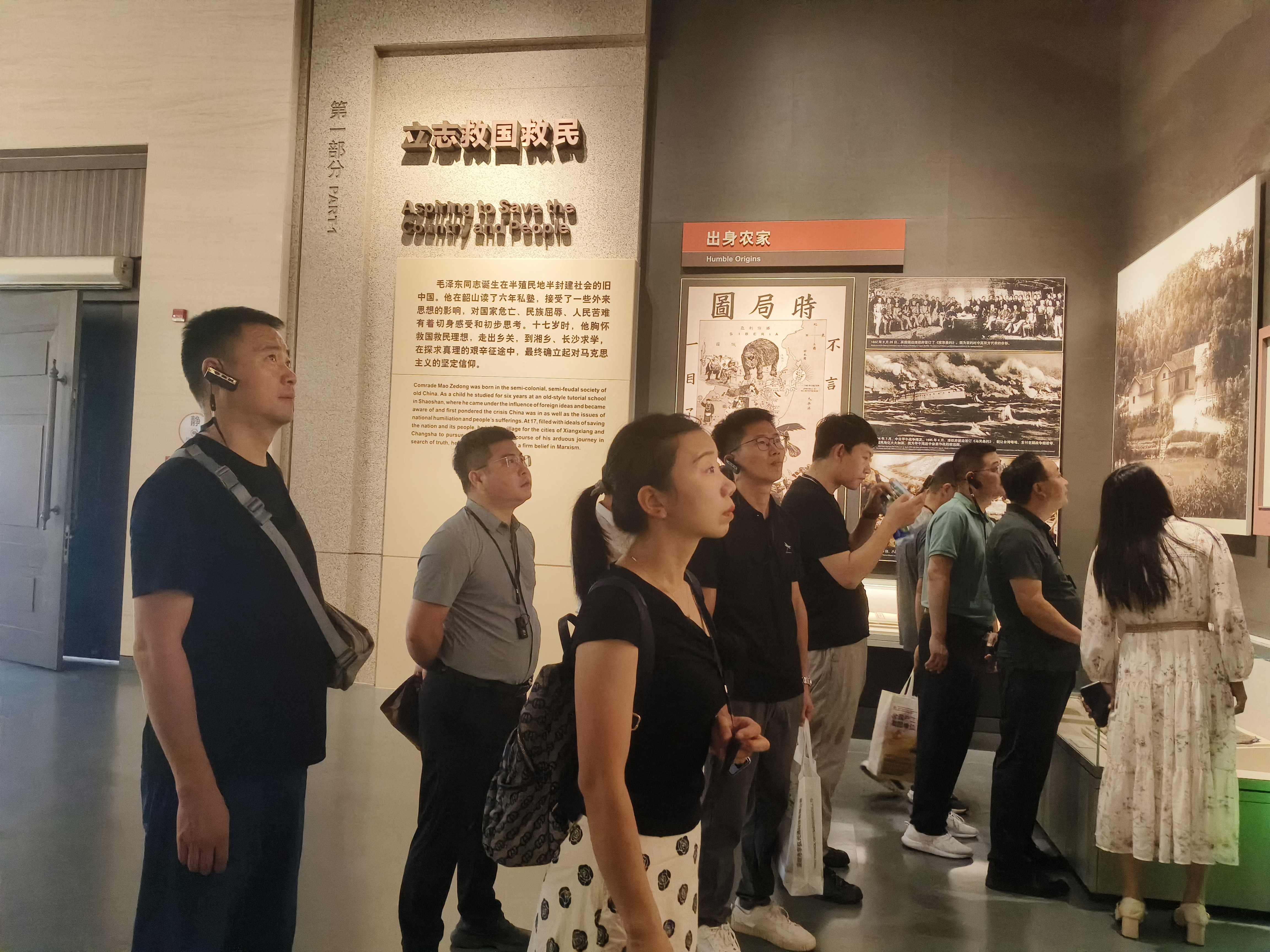接著,宇航工業交換機一行人參觀了韶山毛澤東同志紀念館。紀念館內陳列著大量珍貴的歷史文化,大家認真聆聽講解,細致觀察展品,仿佛穿越時空,感受到了毛澤東同志在中國革命歷史中的巨大貢獻和深遠影響。