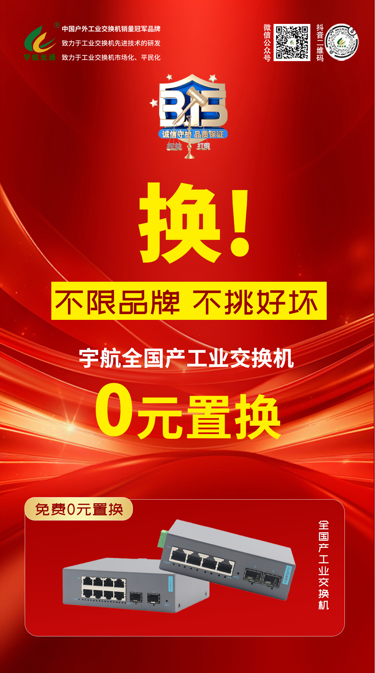 315,宇航推出:不限品牌、不挑好壞,宇航全國產工業交換機0元置換!