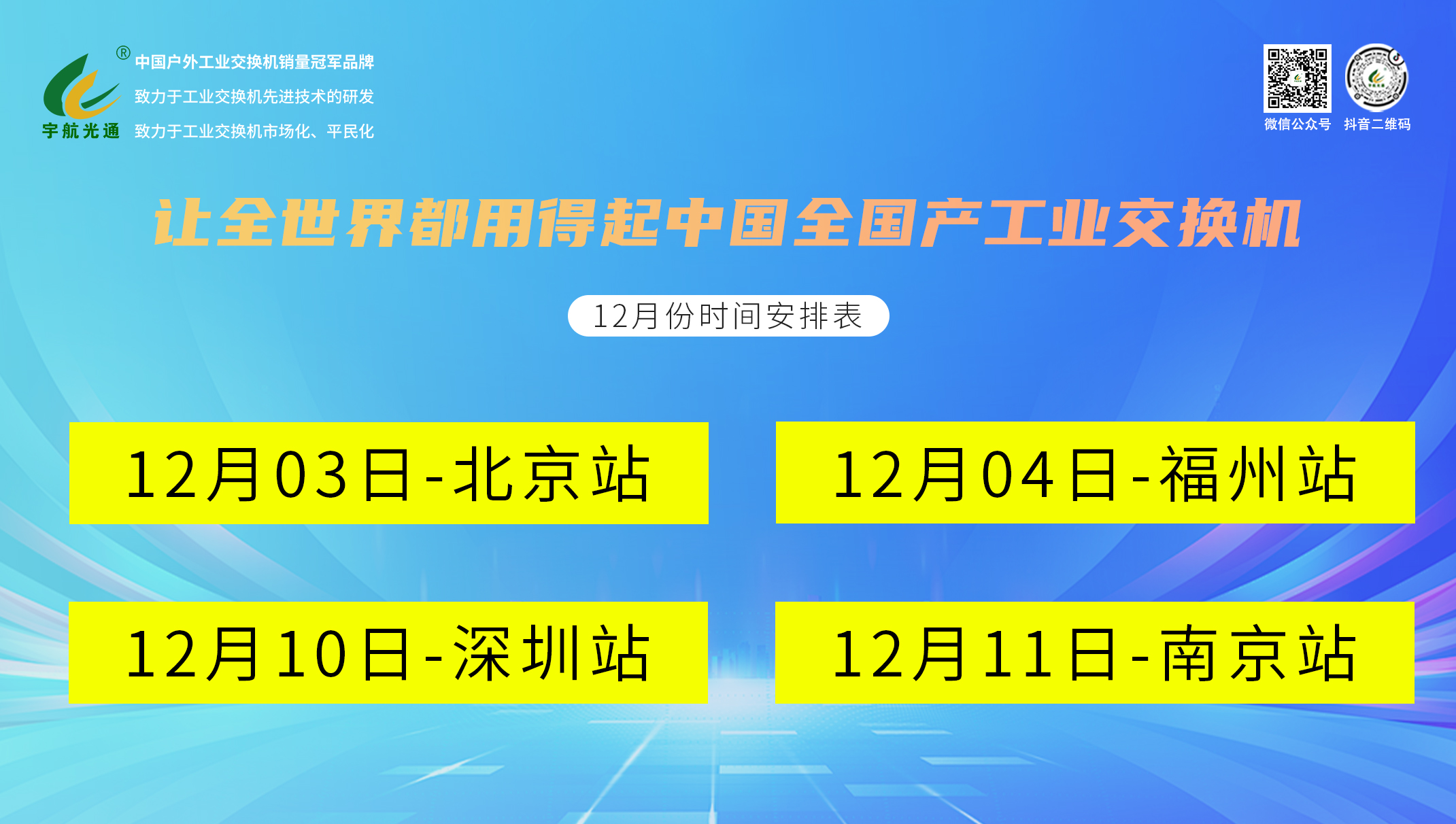 宇航全國產工業交換機-十二月展會活動預告