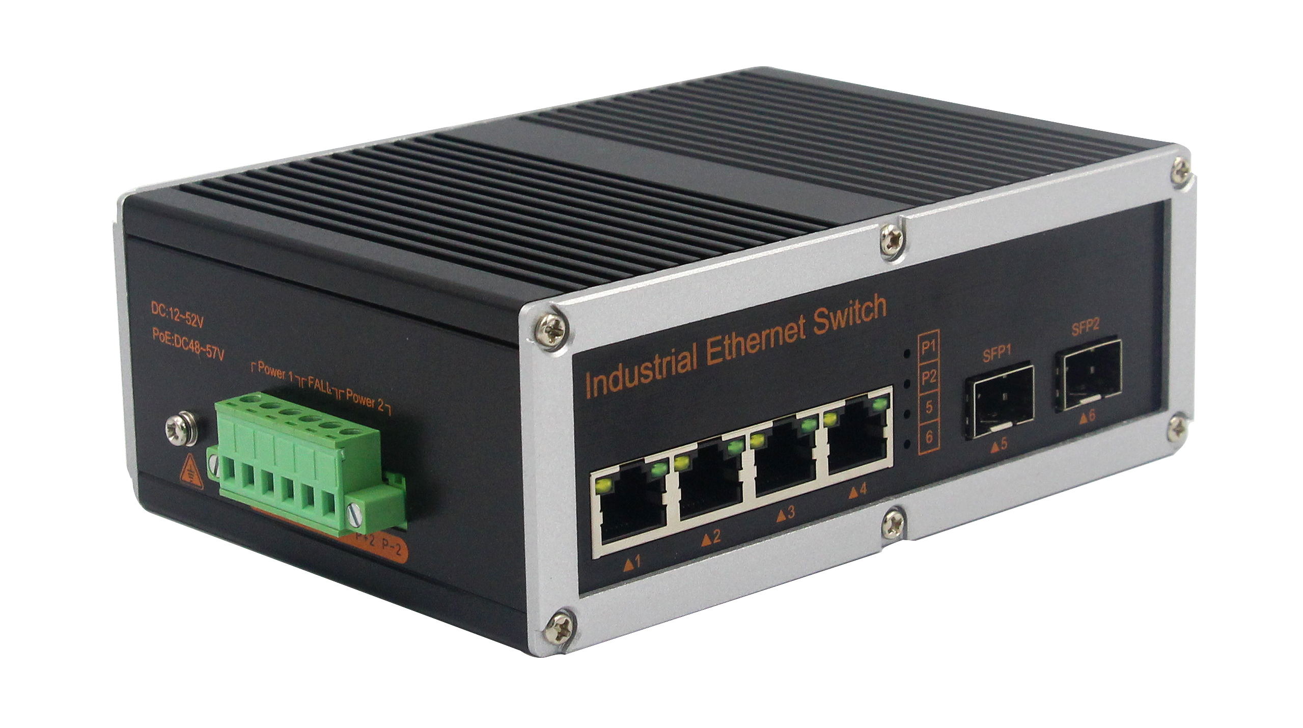2個千兆光+4個千兆電、SFP接口(不含光模塊)、導軌式、DC12-52V供電