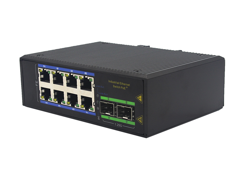 8路百兆POE電口+2路千兆FX光口工業級以太網POE交換機