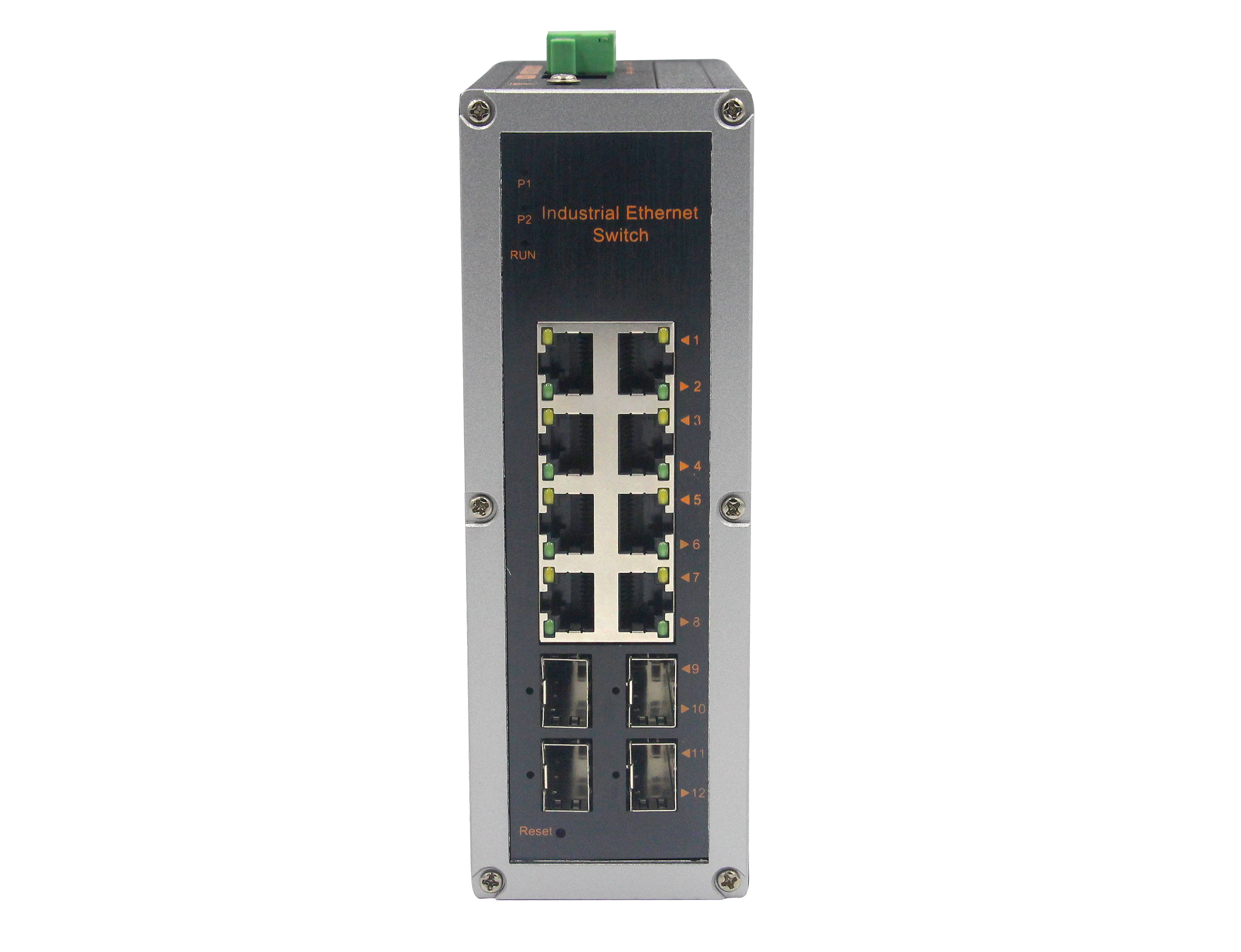 4個千兆光+8個千兆電、SFP接口(不含光模塊)、導軌式、DC12-52V供電