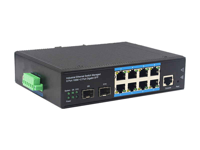 2個千兆光+8 個百兆電、SFP接口、導軌式、DC12-52V供電-寬溫(-40℃-85℃)-CE-RoHS-FCC-公安部檢驗報告-工信部入網許可證
