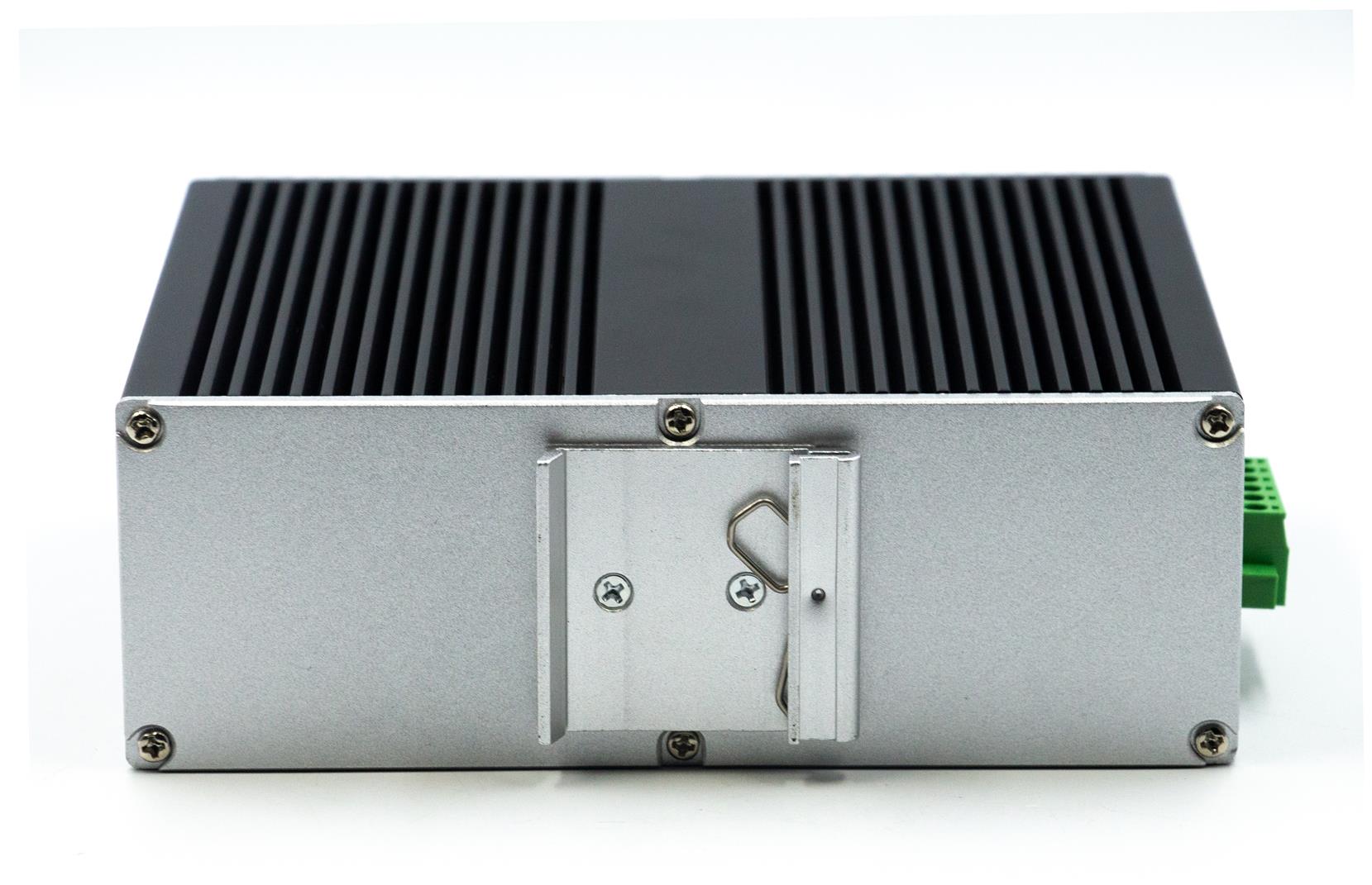 外殼:金屬材質 安裝:導軌式安裝 散熱方式:內置散熱片被動散熱,無風扇散熱,設計保證設備運轉的高可靠性 尺寸:175.6 x 135 x45.5mm 重量:<0.75Kg |