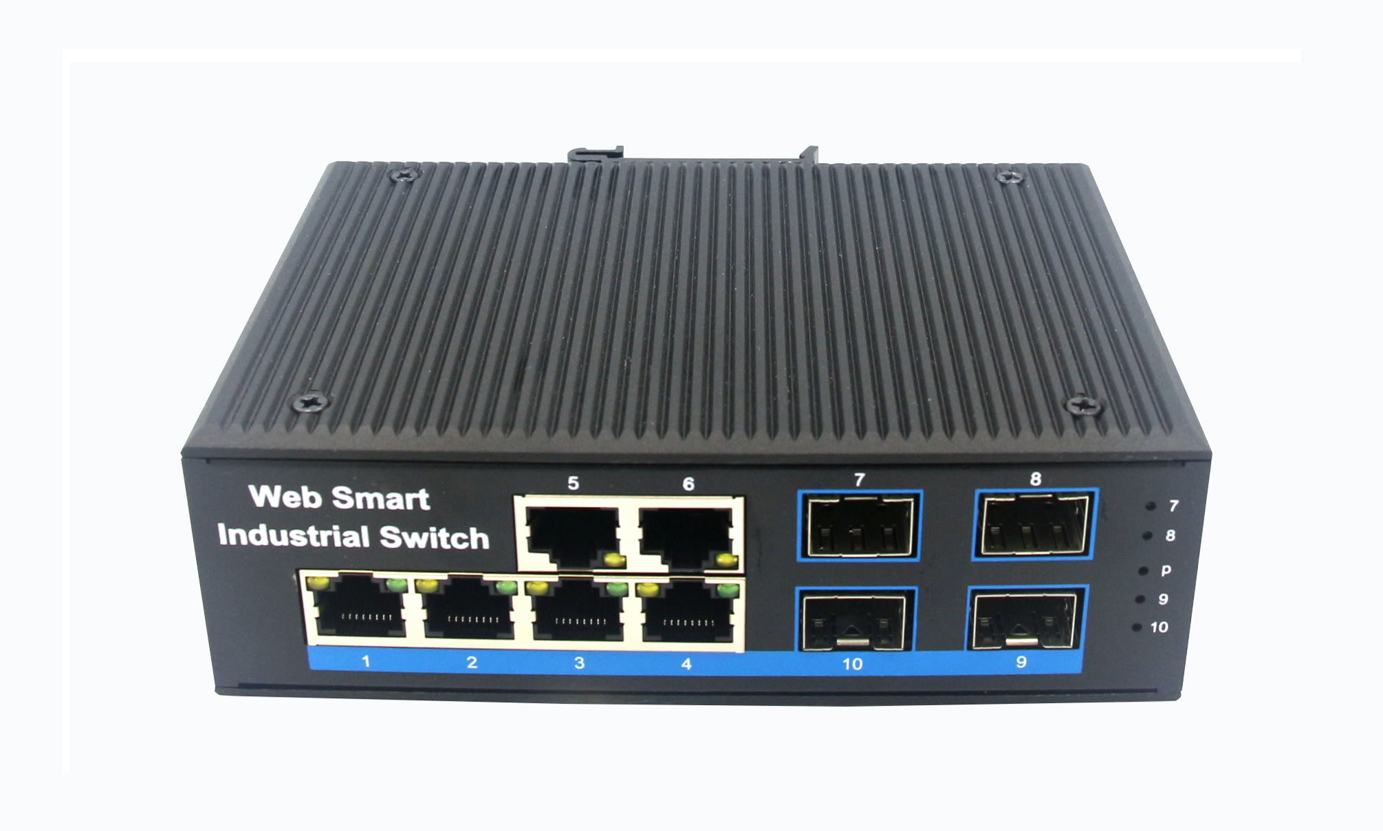 4個千兆光+6個千兆電、SFP接口(不含光模塊)、導(dǎo)軌式、DC12-52V供電-寬溫(-40℃-85℃) |