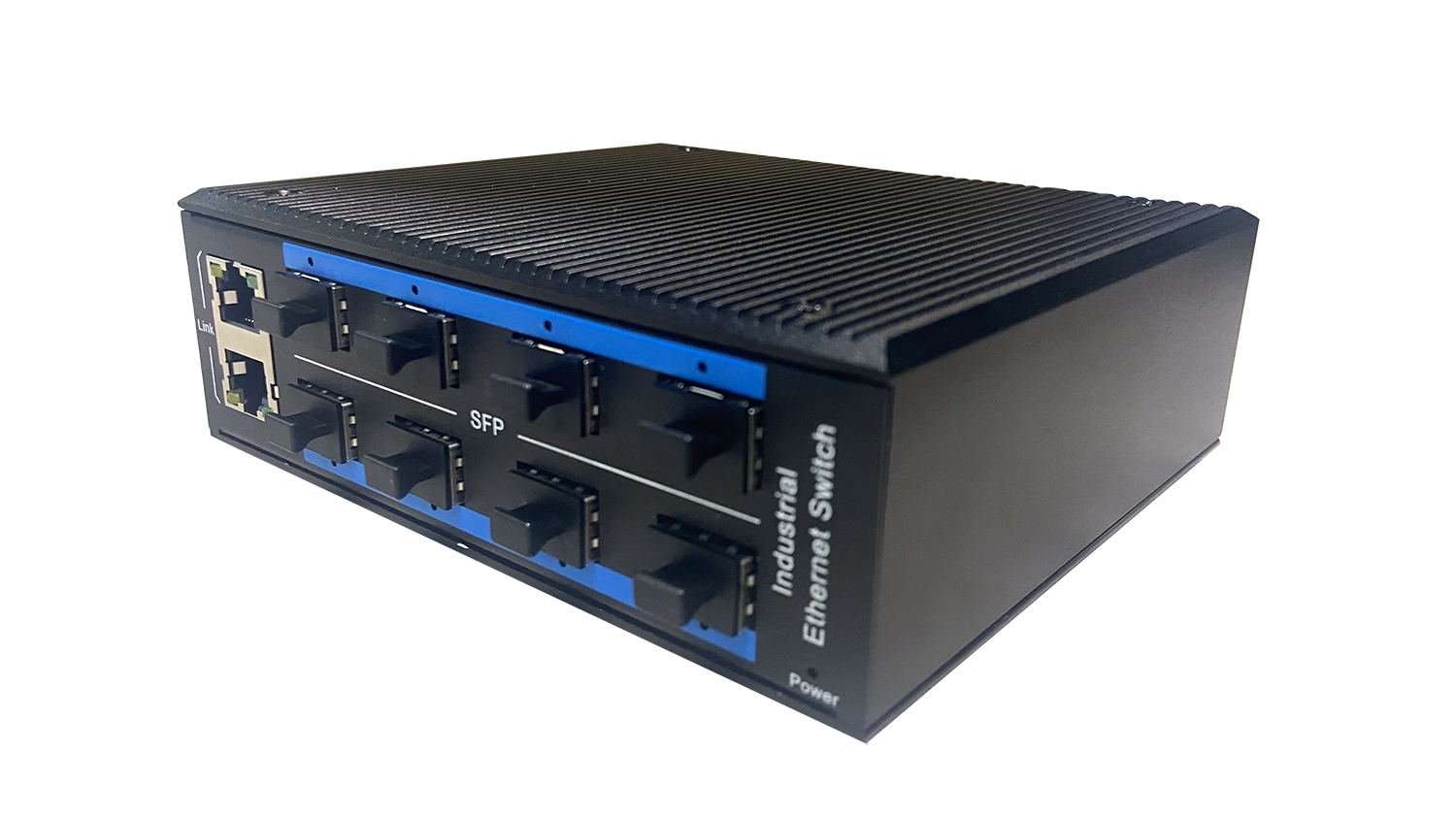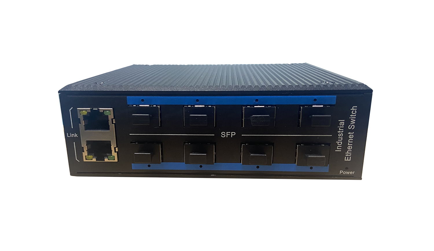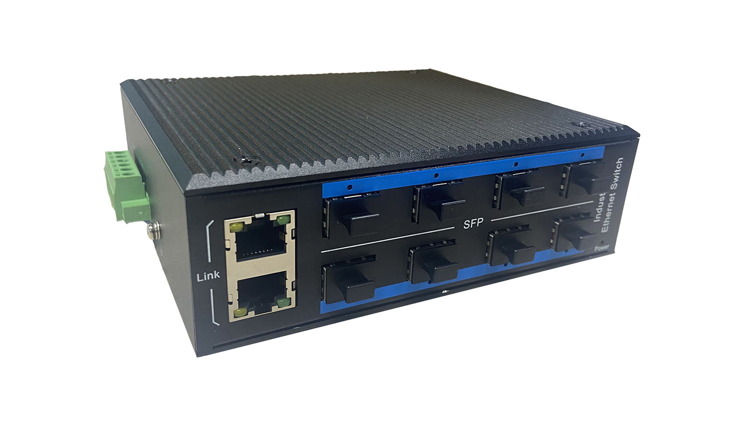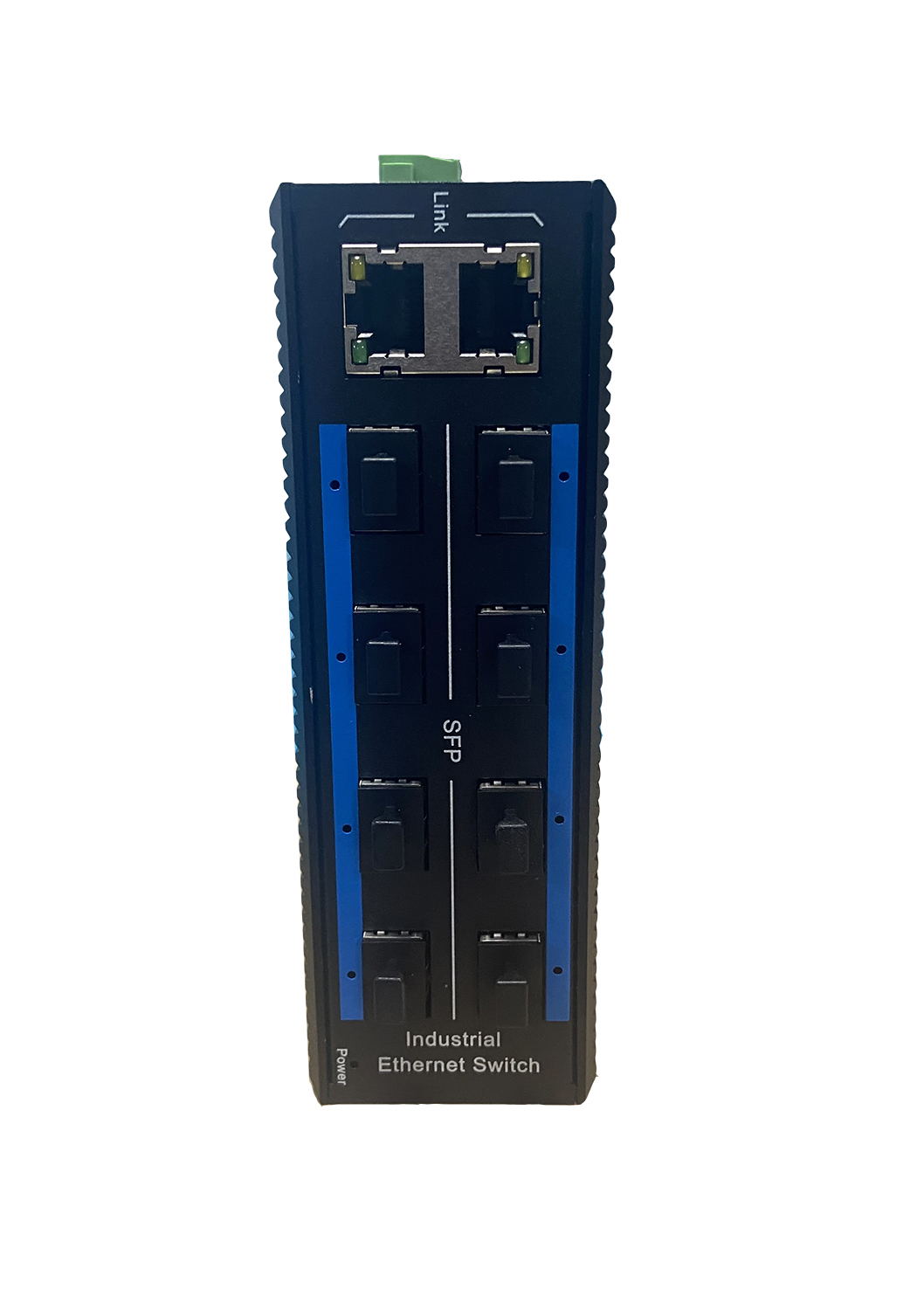 8個千兆光+2個千兆電、SFP接口(不含光模塊)、導軌式、DC12-52V供電-寬溫(-40℃-85℃)