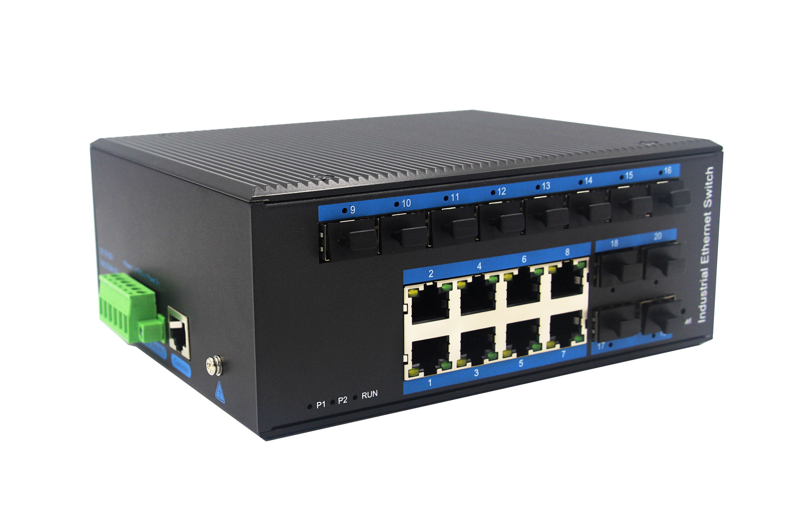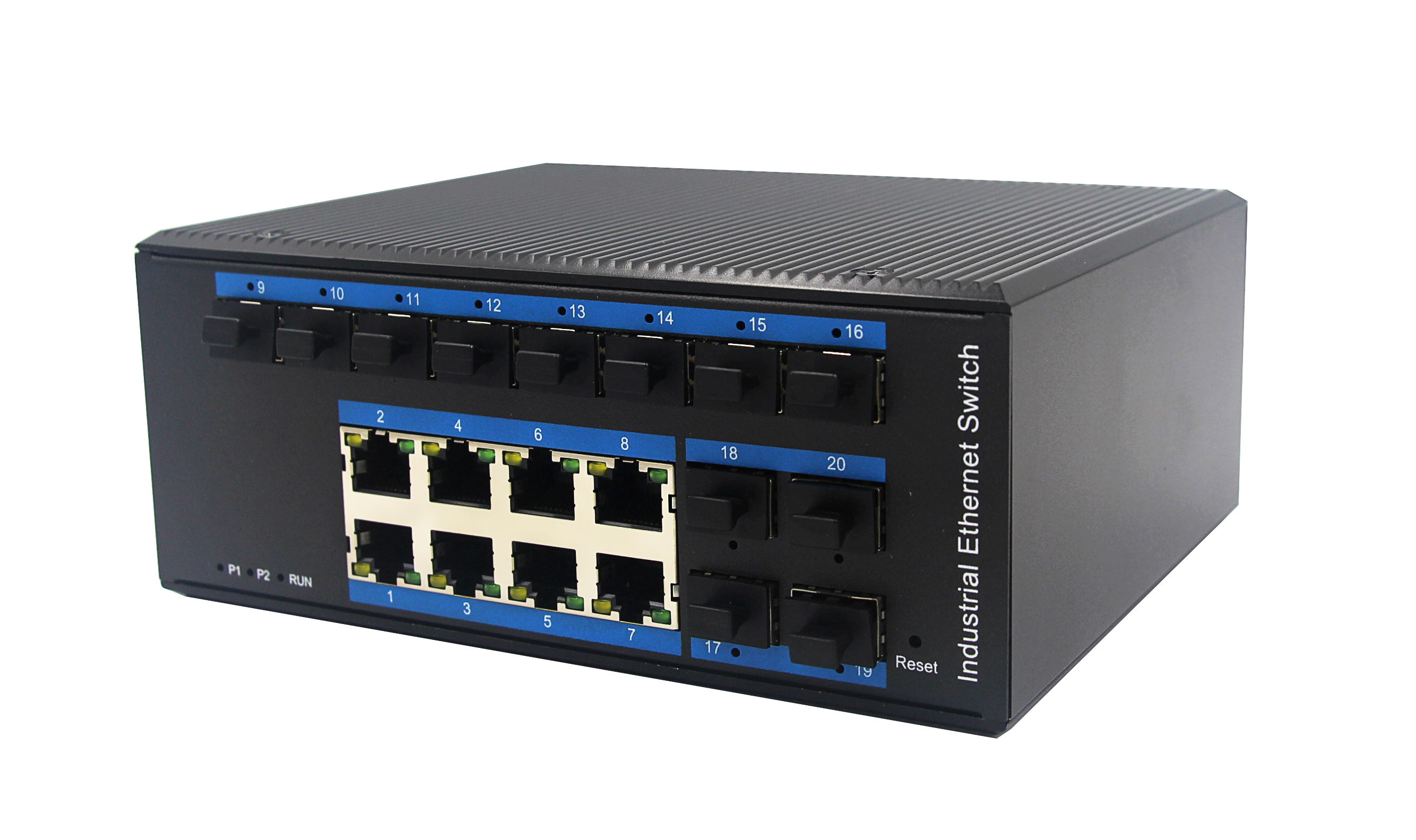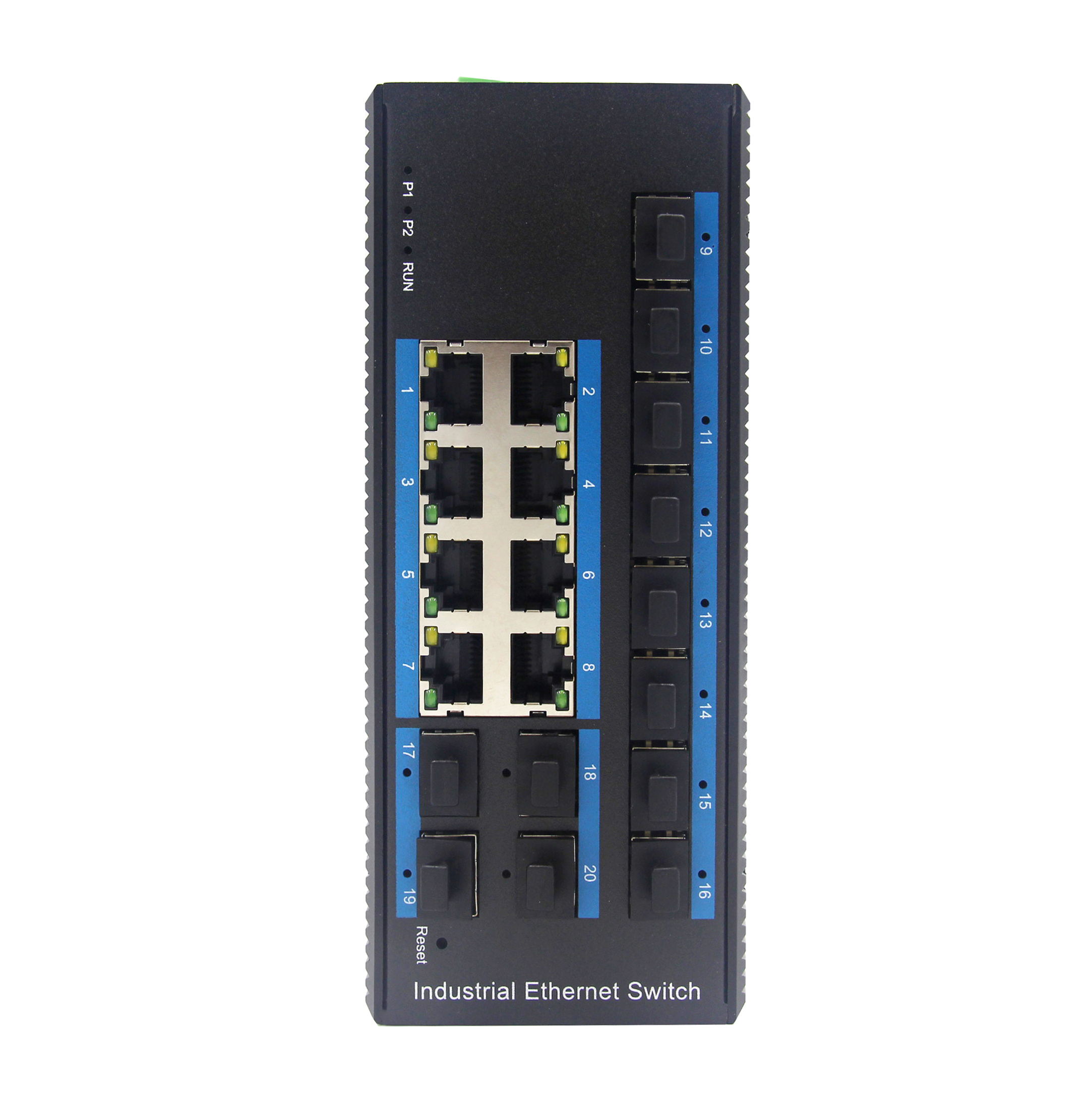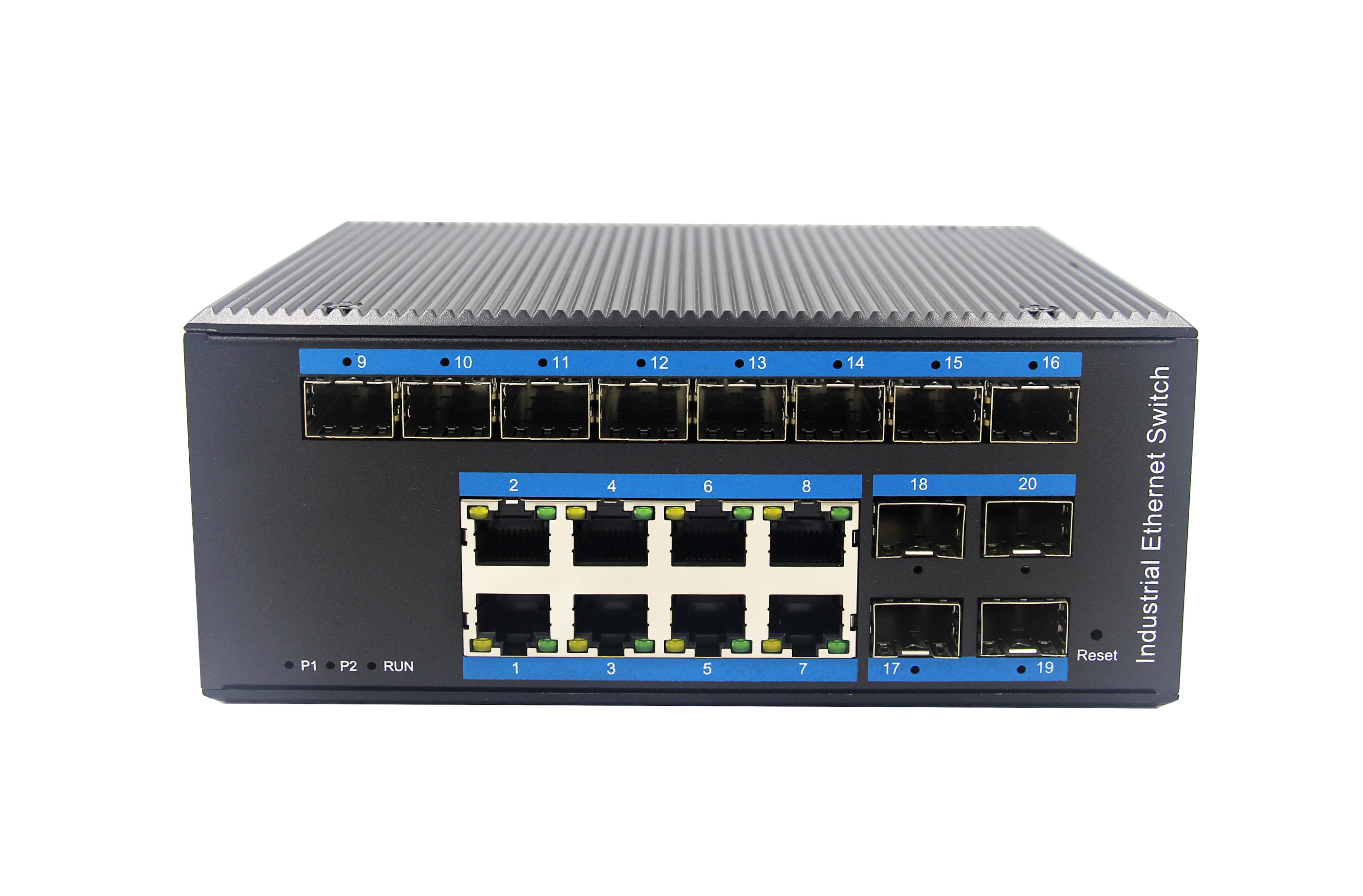 12個千兆光+8個千兆自適應電口、SFP接口、DC12-52V供電-寬溫(-40℃-85℃) |