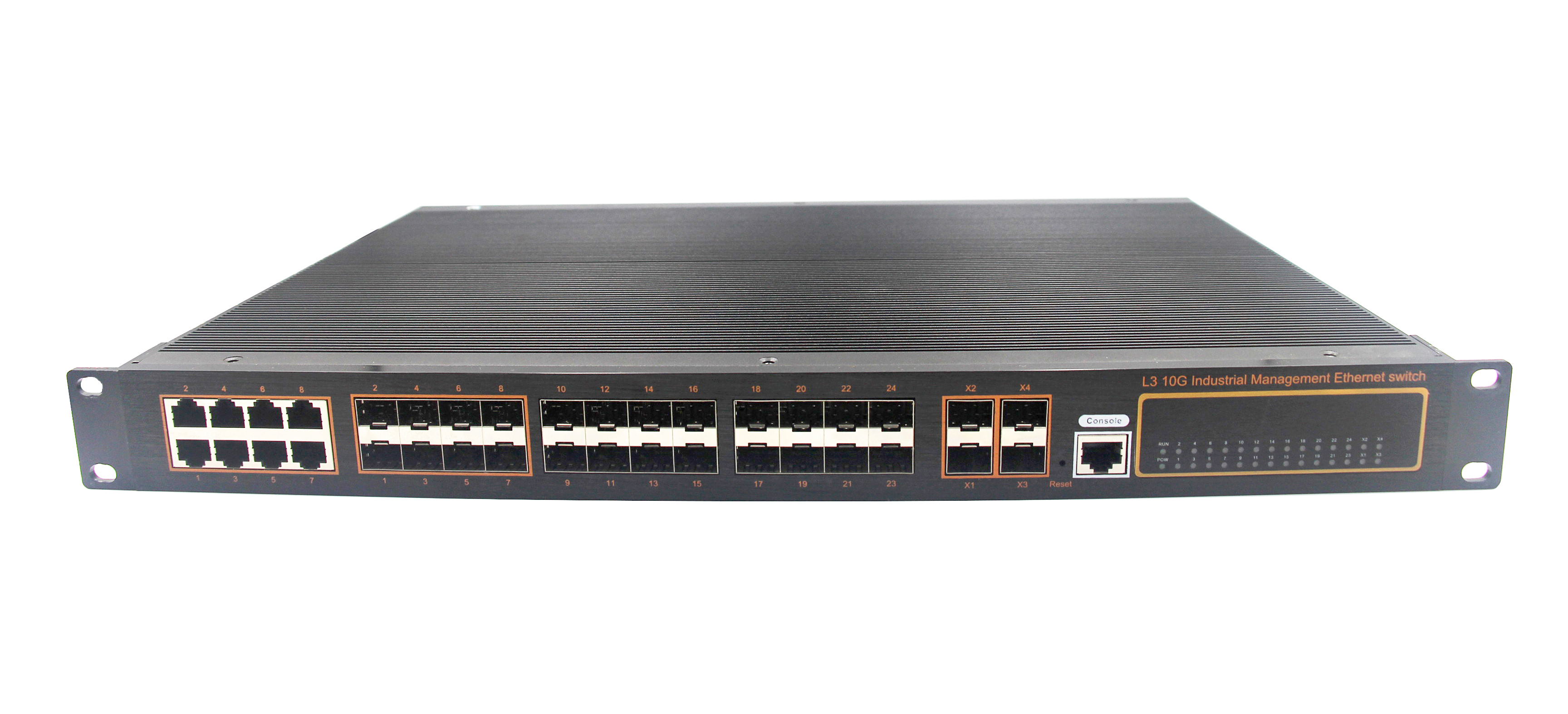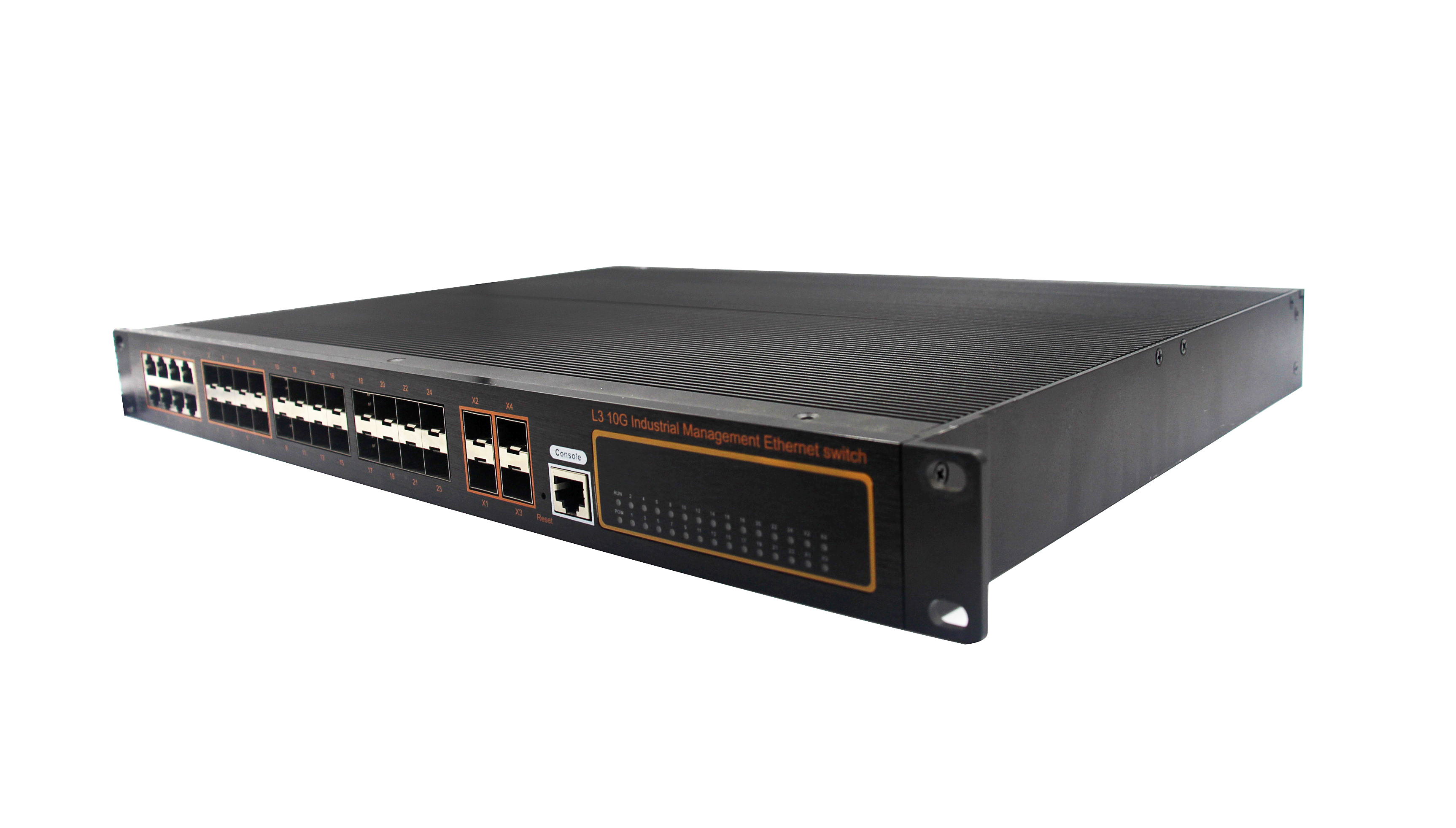 24千兆光+8千兆電+4個萬兆SFP+ 萬兆網管型機架式工業匯聚交換機