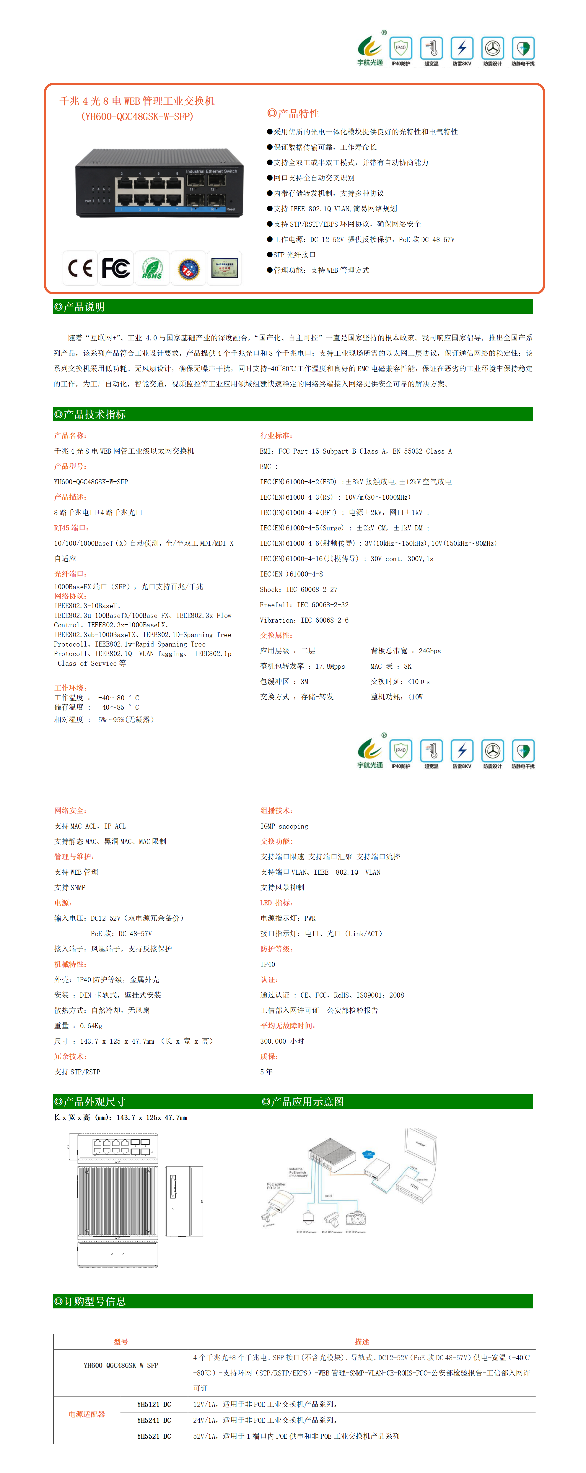 隨著“互聯(lián)網(wǎng)+”、工業(yè) 4.0與國家基礎(chǔ)產(chǎn)業(yè)的深度融合,“國產(chǎn)化、自主可控”一直是國家堅持的根本政策。我司響應(yīng)國家倡導(dǎo),推出全國產(chǎn)系列產(chǎn)品,該系列產(chǎn)品符合工業(yè)設(shè)計要求。產(chǎn)品提供4個千兆光口和8個千兆電口;支持工業(yè)現(xiàn)場所需的以太網(wǎng)二層協(xié)議,保證通信網(wǎng)絡(luò)的穩(wěn)定性;該系列交換機采用低功耗、無風(fēng)扇設(shè)計,確保無噪聲干擾,同時支持-40~80℃工作溫度和良好的EMC電磁兼容性能,保證在惡劣的工業(yè)環(huán)境中保持穩(wěn)定的工作,為工廠自動化,智能交通,視頻監(jiān)控等工業(yè)應(yīng)用領(lǐng)域組建快速穩(wěn)定的網(wǎng)絡(luò)終端接入網(wǎng)絡(luò)提供安全可靠的解決方案。
