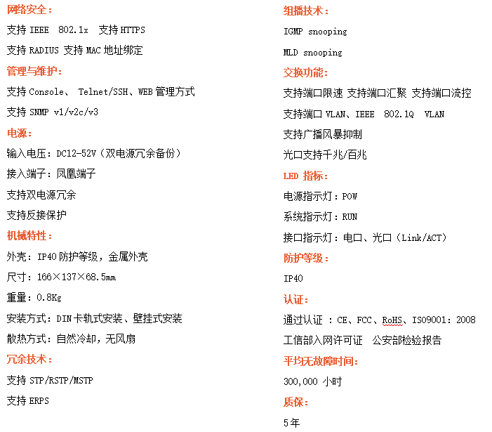●支持STP/RSTP/ERPS,SNMPv1/v2/v3,確保網絡安全