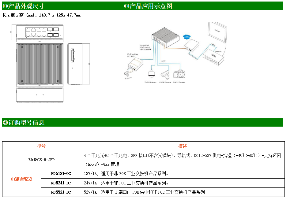 RD48GS-W-SFP系列WEB網(wǎng)管工業(yè)級以太網(wǎng)交換機,產(chǎn)品符合FCC、CE、ROHS標(biāo)準(zhǔn),支持工業(yè)現(xiàn)場所需的以太網(wǎng)二層協(xié)議,保證通信網(wǎng)絡(luò)的穩(wěn)定性。該系列交換機采用低功耗、無風(fēng)扇設(shè)計,確保無噪聲干擾,同時支持-40~80℃工作溫度和良好的EMC電磁兼容性能,保證在惡劣的工業(yè)環(huán)境中保持穩(wěn)定的工作,為工廠自動化,智能交通,視頻監(jiān)控等工業(yè)應(yīng)用領(lǐng)域組建快速穩(wěn)定的網(wǎng)絡(luò)終端接入網(wǎng)絡(luò)提供安全可靠的解決方案。
