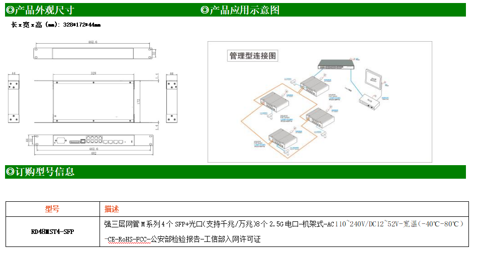 RD48MST4-SFP交換機(jī)是我司推出的一款萬兆三層交換機(jī),配備4個(gè)萬兆SFP+光口和8個(gè)10/100/1000/2500M Base-T自適應(yīng)電口,具備先進(jìn)的硬件處理能力和最豐富的業(yè)務(wù)特性。支持IPv4/IPv6 硬件雙棧及線速轉(zhuǎn)發(fā),使客戶能夠從容應(yīng)對(duì)即將帶來的IPv6 時(shí)代其提供高容量的交換能力。RD48MST4-SFP交換機(jī)具有-40℃~80℃的工作溫度,具有超強(qiáng)的堅(jiān)固度能適應(yīng)各種嚴(yán)苛環(huán)境,使RD48MST4-SFP的交換機(jī)成為一個(gè)即插即用的工業(yè)級(jí)設(shè)備,為用戶的以太網(wǎng)設(shè)備聯(lián)網(wǎng)提供可靠、便捷的解決方案。