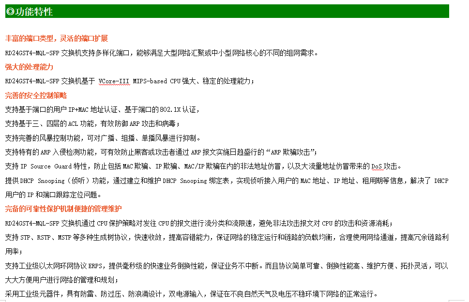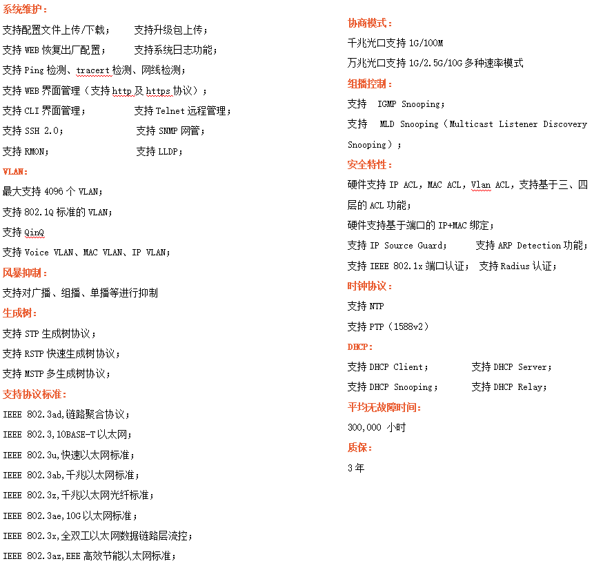 ●管理功能:支持WEB、CLI、SNMP等多種管理方式