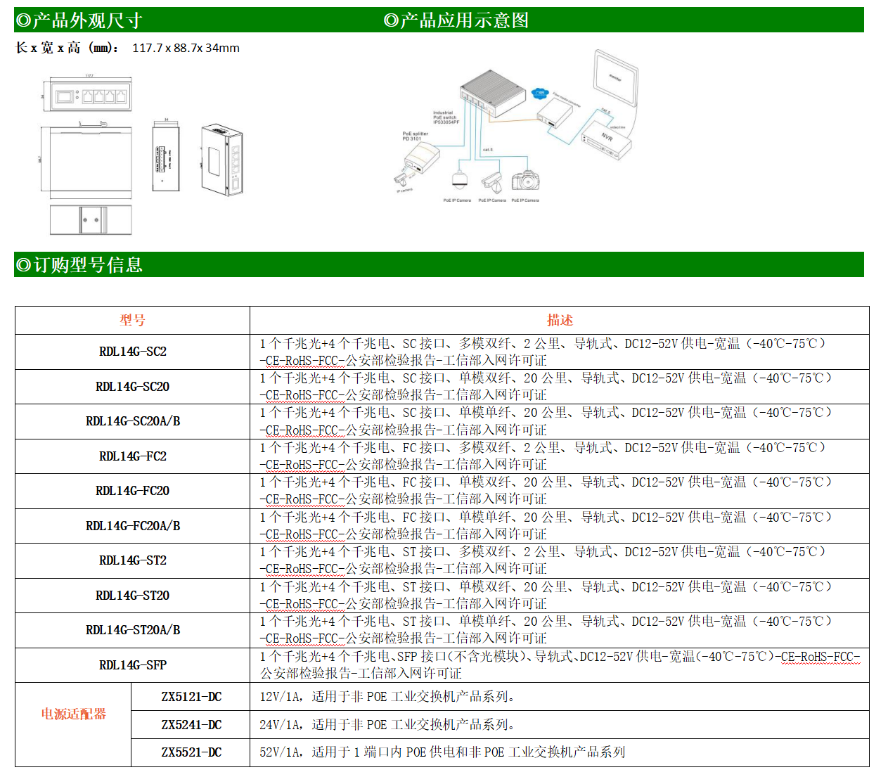 ●使用SC/FC/ST/SFP光纖接口