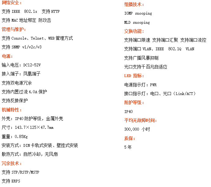 ●管理功能:支持WEB、CLI、SNMP管理方式