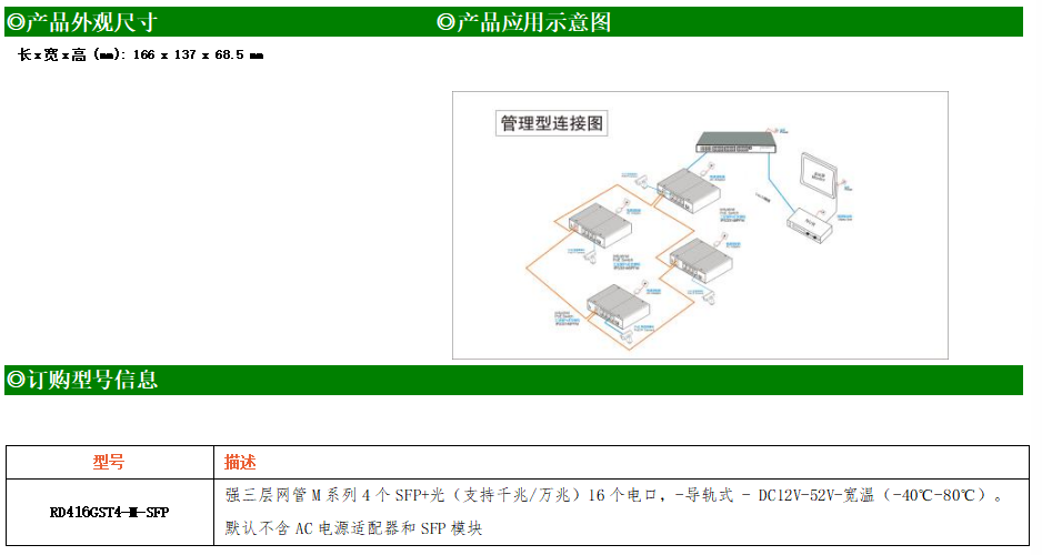 RD416GST4-M-SFP交換機(jī)是我司推出的一款萬(wàn)兆三層交換機(jī),配備4個(gè)萬(wàn)兆SFP+光口和16個(gè)10/100/1000M Base-T自適應(yīng)電口,具備先進(jìn)的硬件處理能力和最豐富的業(yè)務(wù)特性。支持IPv4/IPv6 硬件雙棧及線(xiàn)速轉(zhuǎn)發(fā),使客戶(hù)能夠從容應(yīng)對(duì)即將帶來(lái)的IPv6 時(shí)代其提供高容量的交換能力。RD416GST4-M-SFP交換機(jī)具有-40℃~80℃的工作溫度,具有超強(qiáng)的堅(jiān)固度能適應(yīng)各種嚴(yán)苛環(huán)境。導(dǎo)軌式安裝特性、寬溫操作,使RD416GST4-M-SFP的交換機(jī)成為一個(gè)即插即用的工業(yè)級(jí)設(shè)備,為用戶(hù)的以太網(wǎng)設(shè)備聯(lián)網(wǎng)提供可靠、便捷的解決方案。