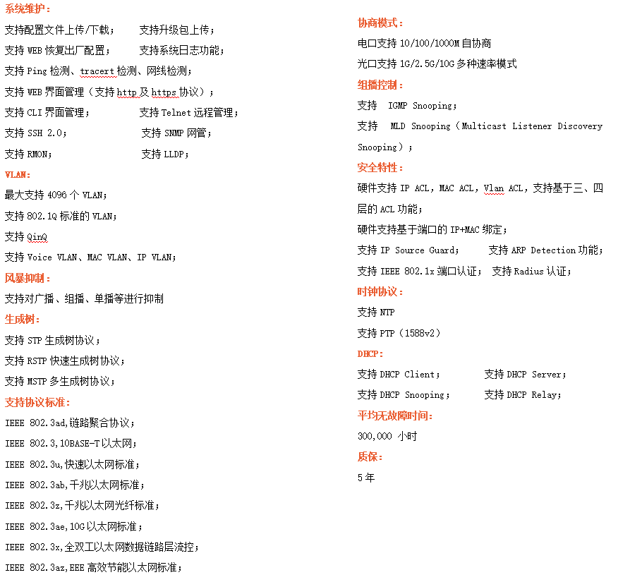 ●網(wǎng)絡(luò)冗余:支持STP/RSTP/MSTP,支持ERPS(自愈時(shí)間<20ms)