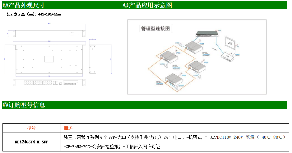 RD424GST4-M-SFP交換機(jī)是我司推出的一款萬(wàn)兆三層交換機(jī),配備4個(gè)萬(wàn)兆SFP+光口和24個(gè)10/100/1000M Base-T自適應(yīng)電口,具備先進(jìn)的硬件處理能力和最豐富的業(yè)務(wù)特性。支持IPv4/IPv6 硬件雙棧及線速轉(zhuǎn)發(fā),使客戶(hù)能夠從容應(yīng)對(duì)即將帶來(lái)的IPv6 時(shí)代其提供高容量的交換能力。RD424GST4-M-SFP交換機(jī)具有-40℃~80℃的工作溫度,具有超強(qiáng)的堅(jiān)固度能適應(yīng)各種嚴(yán)苛環(huán)境,使RD424GST4-M-SFP的交換機(jī)成為一個(gè)即插即用的工業(yè)級(jí)設(shè)備,為用戶(hù)的以太網(wǎng)設(shè)備聯(lián)網(wǎng)提供可靠、便捷的解決方案。