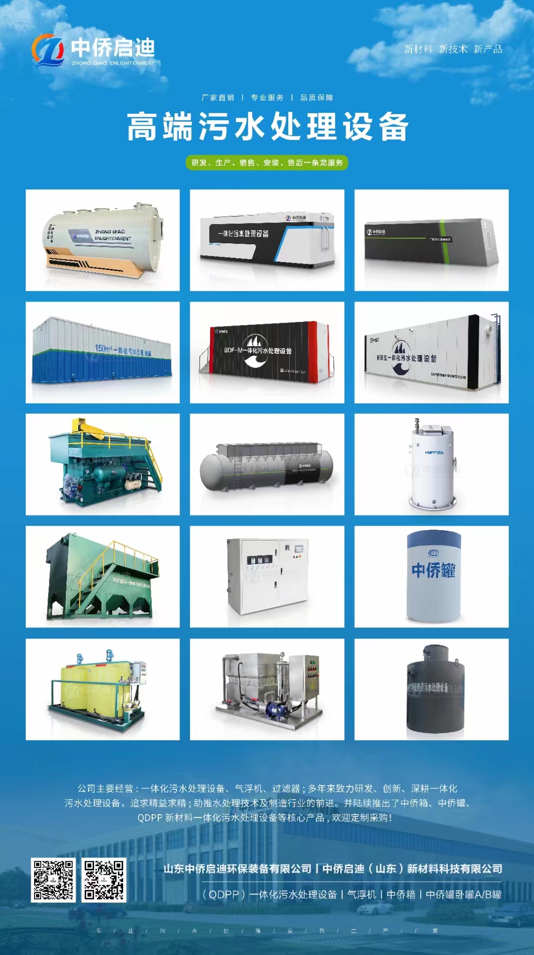 山東中僑啟迪環保裝備有限公司是一家經營十多年的集技術研發、項目設計、設備制造、工程安裝、調試運營、技術咨詢服務為一體的高新技術企業。中僑啟迪奉行“質量立企、誠信為本”的企業精神,結合污水實際情況,采用技術上先進、經濟上節約的工藝設計處理方案,嚴格要求生產及施工的一體化污水處理設備。