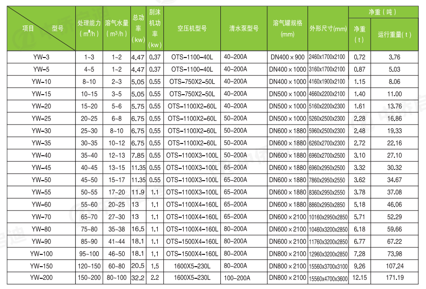 溶氣氣浮機的參數有很多,主要技術參數一般有:外形尺寸,箱體尺寸,處理水量,污染物去除效率,裝機功率,裝機重量,運行重量,設備配置等氣浮機參數。